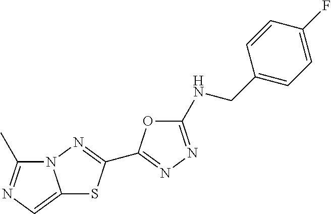 Example 103: (4-Fluoro-benzyl)-[5-(5-methyl-imidazo[5,1-b][1,3,4]thiadiazol-2-yl)-[1,3,4]oxadiazol-2-yl]-amine