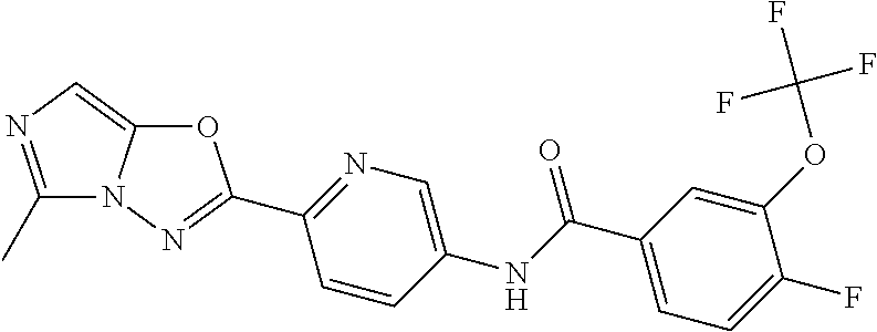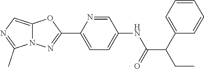 Example 104: (2-Fluoro-benzyl)-[5-(5-methyl-imidazo[5,1-b][1,3,4]thiadiazol-2-yl)-[1,3,4]oxadiazol-2-yl]-amine