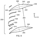 Purely by way of further example, in FIG. 8, the spacing p between neighbouring aerodynamic vanes 510-550 may be substantially across the gap 260, with the chord q of the aerodynamic vanes increasing from the suction surface 244 of a strut-vane 240 defining the gap 260 to the pressure surface 242 of the other strut-vane 240 defining the gap 260.