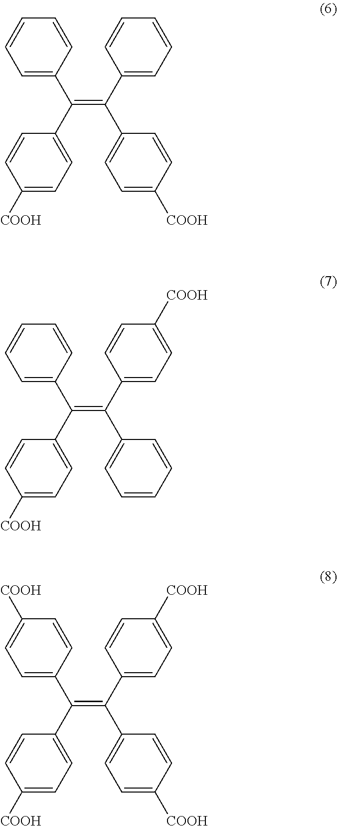 In the general formula (2), R5 and R8 each independently represent a carboxyl group, or a substituent containing a carboxyl group. R6 and R7 each independently represent a hydrogen atom, an alkyl group, an alkoxy group, a halogen atom, a hydroxyl group, a carboxyl group, or a substituent containing a carboxyl group.