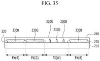 The light-blocking member 220 may be further disposed at or near the boundaries between the first color pixel area PX(R), the second color pixel area PX(G), the third color pixel area PX(B), and the fourth color pixel area PX(W). An overcoat 240 may be further disposed on the first color filter 230R, the second color filter 230G, the third color filter 230B, and the light-blocking member 220.