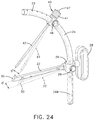 As shown in FIGS. 20C and 20D and best shown in FIG. 24, each notch 23 in a straight portion 24 of the guide 21 or in the arcuate portion 20 has a length extending a circumferential distance that allows the first arm with the pinning member 30 to angularly move or shift θ1 fore or aft relative to a null or 0 degree position centerline. Similarly, the movable guide 40 can be angularly moved a distance θ2. These adjustments allow the surgeon additional adjustment features for different anatomical features. This adjustment from the centerline causes the virtual pathway or the selected path to shift so as not to intersect by an adjustment amount selected by the physician providing additional flexibility during a procedure.