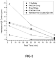 FIG. 3 is graph showing headspace hydrogen sulfide content over time after applying hydrogen sulfide solution to test litter samples in amounts that simulate the emanation of hydrogen sulfide from formed stools.