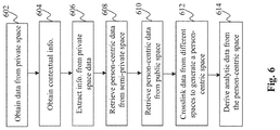 - information exchange does not automatically create any linkage between data between the private and semi-private spaces 104 , 106 .
