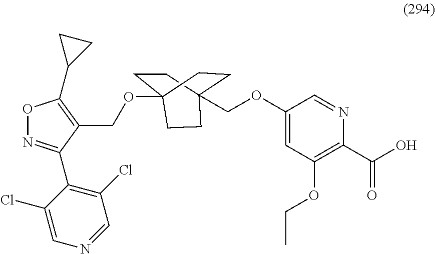 1H NMR (500 MHz, DMSO-d6) δ 8.79 (s, 2H), 7.85-7.68 (m, 1H), 7.36- 6.98 (m, 4H), 6.31-5.73 (m, 2H), 4.22 (s, 2H), 3.89 (s, 2H), 2.57 (d, J = 4.6 Hz, 3H), 2.32-2.20 (m, 1H), 1.65-1.53 (m, 6H), 1.47-1.36 (m, 6H), 1.18-1.12 (m, 2H), 1.10- 1.03 (m, 2H). FXR EC50 (nM) = 393. MS (ESI) 566 (M + H). |