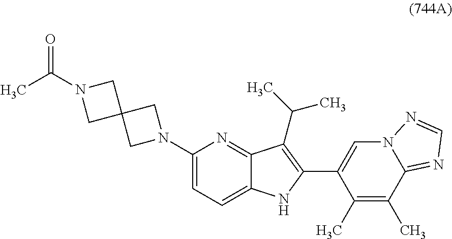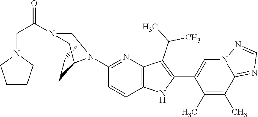 - PLVXRKOUAJHSAZ-UHFFFAOYSA-N C(C)(C)C1=C(NC=2C1=NC(=C(C=2)C)C1CCN(CC1)CC(C)(O)C)C=1C=C(C=2N(C=1)N=CN=2)OC Chemical compound C(C)(C)C1=C(NC=2C1=NC(=C(C=2)C)C1CCN(CC1)CC(C)(O)C)C=1C=C(C=2N(C=1)N=CN=2)OC PLVXRKOUAJHSAZ-UHFFFAOYSA-N 0.000 claims 2