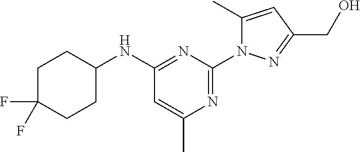 The amount of free compound is then expressed in terms of its potency against the SK2 channel as follows: % SK2 SC100=CFB/SK2 SC100×100, where SK2 SC100 (Table 3, “SK2 SC100”) is the measured value of potency of the compound against SK2 channels and % SK2 SC100 (Table 3, “% SK2 SC100”) is the free brain concentration (CFB) normalized to SK2 SC100. Thus the % SK2 SC100 gives a measure of the degree to which each of the compounds is modulating SK2 channels regardless of differences in potency or exposure. Values are given in