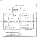 The data storage 10 includes a hard disc or a memory disc, and stores data input from a personal computer or another storage medium (hereinafter, referred to as “data terminal”) through which the data can be input and output, and outputs the data at the request of the data terminal, which can input and output the data into and from the data storage 10.