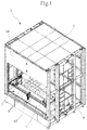 FIG. 1 illustrates a schematic view of an automatic warehouse equipped with the selective picking up and depositing device according to the present invention;