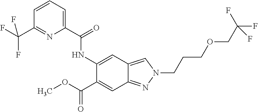 Also described by Example 117 is an indazole derivative having a hydroxyethyl substituent at the 1 position. However, no indazole derivatives having a 3-hydroxy-3-methylbutyl substituent at the 1 position or 2 position are described.