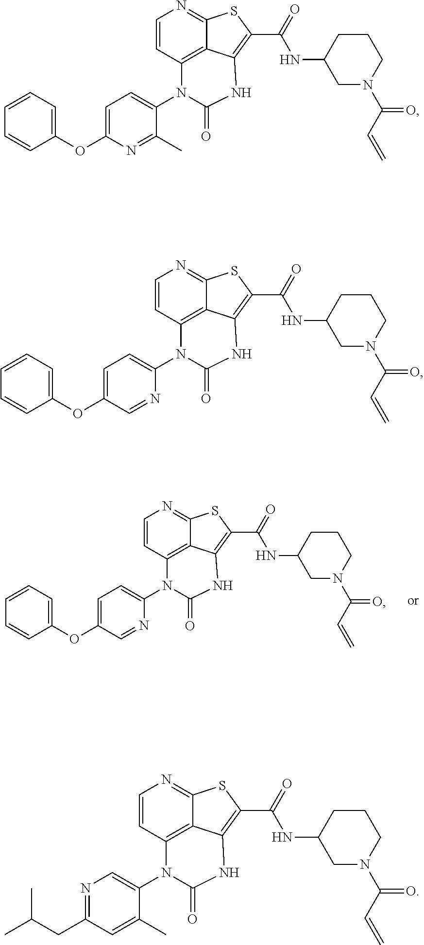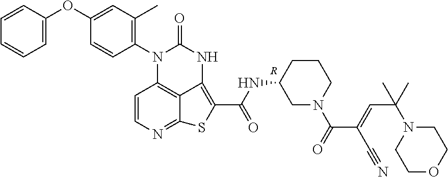 - Aspect 64. A method of inhibiting Bruton's tyrosine kinase comprising contacting the kinase with a compound of any one of aspects 1-61.