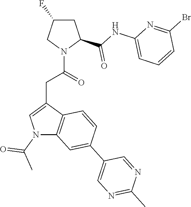 (2S,4R)-1-(2-(1- acetyl-6-(2- methylpyrimidin- 5-yl)-1H-indol-3- yl)acetyl)-N-(6- bromopyridin-2- yl)-4- fluoropyrrolidine- 2-carboxamide |