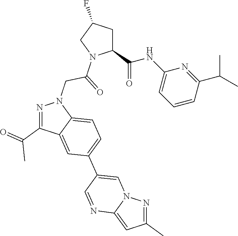 (2S,4R)-1-(2-(3- acetyl-5-(2- methylpyrazolo[1,5-a] pyrimidin-6-yl)-1H- indazol-1-yl)acetyl)-4- fluoro-N-(3- ((trifluoromethyl) sulfonyl)phenyl) pyrrolidine-2- carboxamide |