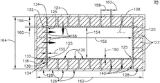 In one non-limiting aspect of the disclosure, the set of base conductor 120 walls cross-section can have a thickness 150 of approximately 0.0127 millimeters. In another non-limiting aspect of the disclosure, a first cross-section dimension 152 of the fluid channel 108 cross-section, as defined by the base conductor 120, can be approximately 3.81 millimeters, which a cross-sectional second dimension 154 of the fluid channel 108, normal to the first dimension 152, can be approximately 1.27 millimeters. In yet another non-limiting aspect of the disclosure, a first cross-section dimension or thickness 156 of a solid conductor can be approximately 0.48 millimeters. In yet another non-limiting aspect of the disclosure, a second cross-section dimension or thickness 158 of a solid conductor, normal to the first dimension 156 of the solid conductor, can be approximately 0.48 millimeters. In this sense, a solid conductor 122 can have a cross-sectional area less than or equal to approximately 0.24 micrometers squared.