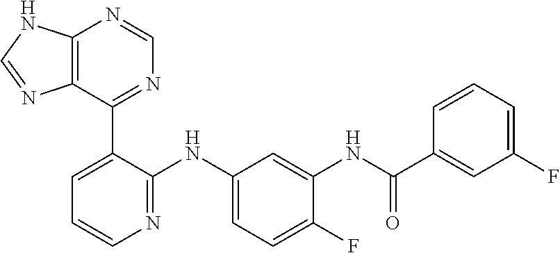 - IPRAEARKVFIQIZ-UHFFFAOYSA-N O=C(NC1=CC(C(F)(F)F)=CC=C1)C1=CC(CC2=C(C3=NC=NC4=C3N=CC4)C=CC=N2)=CC=C1F Chemical compound O=C(NC1=CC(C(F)(F)F)=CC=C1)C1=CC(CC2=C(C3=NC=NC4=C3N=CC4)C=CC=N2)=CC=C1F IPRAEARKVFIQIZ-UHFFFAOYSA-N 0.000 description 3