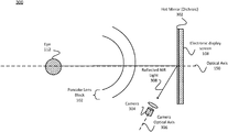 - An IR emitter illuminates an eye of the user, and the IR light is reflected from an eye through the pancake lens block and eventually incident on the dichroic element.