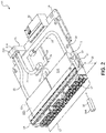 The electrical module 16 is not limited to any particular type of device, and in some examples, is an optical communication module, configured as an optical transceiver that may be used in high-bandwidth data communication applications. When fully received in a module slot of faceplate assembly 14, such as module slot 17, and having assembly 10 received into a card slot of a card cage (not shown in FIG. 2) so that the assembly 10 is electrically powered, the electrical modules such as electrical module 16 that are fully received in the slots of faceplate assembly 14 may perform various electrical and communication functions which the devices are configured to perform. In the process of operating under power and performing various electrical and communication functions, the devices themselves may generated thermal heat and experience an increase in temperature of the device. The generated thermal heat may raise the temperature of the electrical module itself, and at some point may increase the temperature of the electrical module to a point where the performance of the electrical module may be adversely affected, and/or damage to the components of the electrical module may occur. Therefore, cooling the electrical modules, such as electrical module 16, once the devices are fully received in the slots of the faceplate assembly 14 and operating may be required to maintain a proper operating range of temperature for the slot-mounted electrical modules. The cooling may aid in maintaining the electrical module at a temperature or within a range of temperatures that assures the device will not overheat, and potentially fail, either temporarily or permanently due to a thermal overheating of the electrical module.