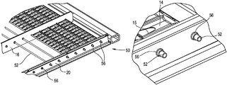 - FIG. 4 illustrates, in more detail, the louvers 14 and the hollow tubes 52 which support the louvers 14 and which extend through apertures or holes 56 provided in the side channel members 20 and the dividers 16 .