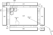 In addition, according to exemplary embodiments, in the display panel DISP, the display device, and the driving circuit, the electrode and line structures, including COM, ROL, PDL, and PCL, for the touch sensing and the photosensing, are efficiently designed.