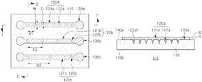 - the first wiring may further include a plurality of first protruding patterns extending from one surface of the first line pattern and to insides of the plurality of pattern holes, respectively.