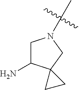 - wherein the R4 substituent of a)-d) does not project greater than about 3 Å below the plane of the A, B and C Rings toward the GyrB/ParE binding pocket floor in the bound conformation; and