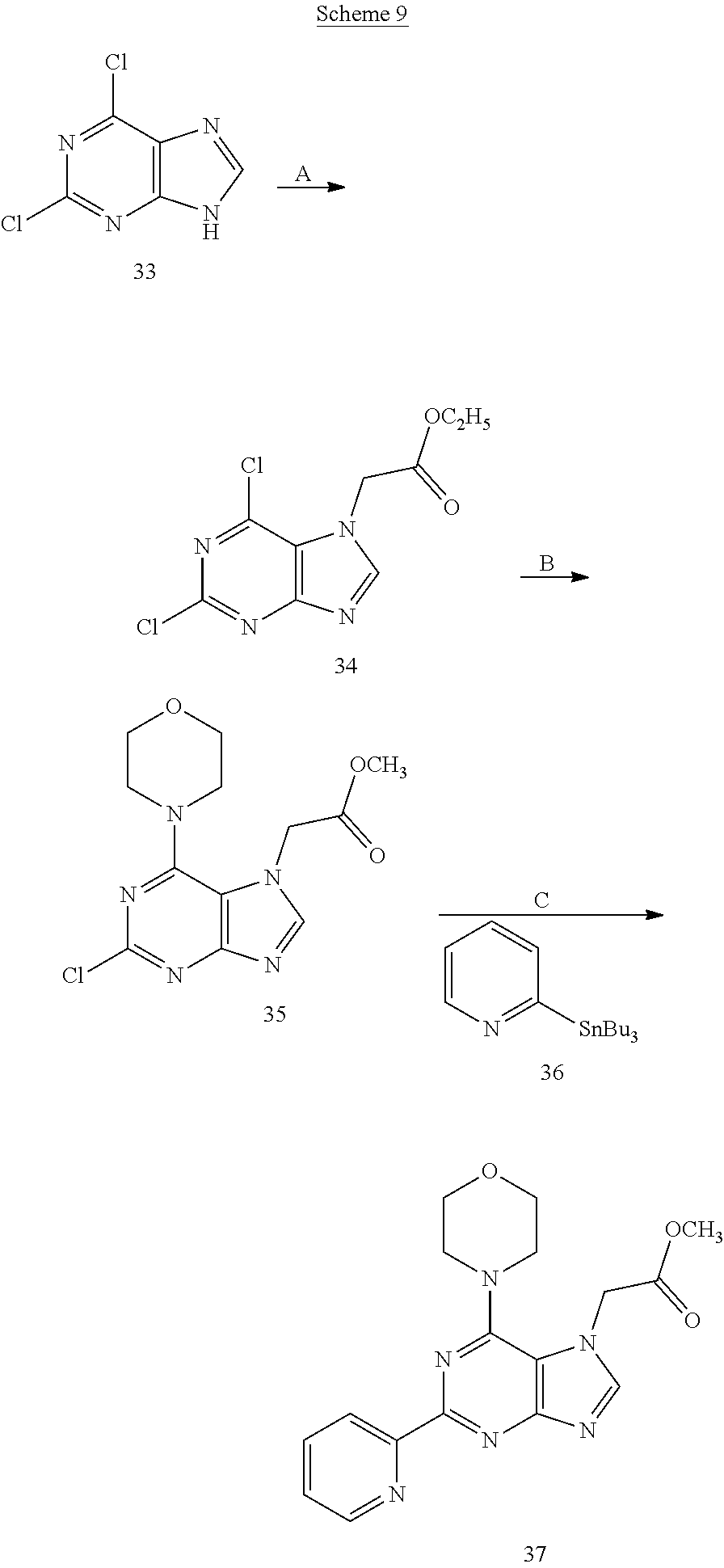 Step B: To a suspension of compound 86 (4.3 g) in POCl3 (35 ml), DMF (0.5 ml) was added. The reaction mixture was heated at 90° C. for 12 h and evaporated. The residue was quenched with ice-cold water (50 ml) and extracted with MTBE (3*50 ml). The organic extracts was washed with brine (2*50 ml), dried over Na2SO4 and evaporated in vacuo to obtain compound 87 (2.3 g).