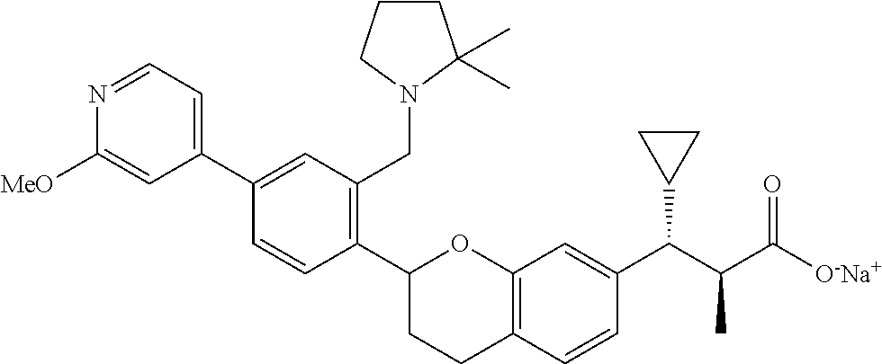 G-protein-coupled receptor 40 (GPR40) agonists are disclosed in WO 2007/136572, WO 2007/136573, WO 2009/058237, WO 2006/083612, WO 2006/083781, WO 2010/085522, WO 2010/085525, WO 2010/085528, WO 2010/091176, WO 2004/041266, EP 2004/1630152, WO 2004/022551, WO 2005/051890, WO 2005/051373, EP 2004/1698624, WO 2005/086661, WO 2007/213364, WO 2005/063729, WO 2005/087710, WO 2006/127503, WO 2007/1013689, WO 2006/038738, WO 2007/033002, WO 2007/106469, WO 2007/123225, WO 2008/001931, WO 2008/030520, WO 2008/030618, WO 2008/054674, WO 2008/054675, WO 2008/066097, WO 2008/130514, WO 2009/048527, WO 2009/058237, WO 2009/111056, WO 2010/004347, WO 2010/045258, WO 2010/085522, WO 2010/085525, WO 2010/085528, WO 2010/091176, WO 2010/143733, WO 2012/0004187, WO 2012/011125, WO 2012/072691, WO2013/104257, WO 2013/122028, WO 2013/122029, WO 2013/128378, WO 2013/178575, WO 2014/073904, WO 2014/078608, WO 2014/078609, WO 2014/078610, WO 2014/078611, U.S. Pat. Nos. 8,030,354, 8,450,522, CN 103030646, CN 103012343, and GB 2498976.