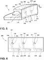 FIG. 7A is a partial, perspective view similar to the orientation of FIG. 7, showing an alternative embodiment of the cooling passages of FIG. 7, but provided with a tapered exit as shown in the drawing.