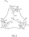 In some examples, the wheel drive system 100 can be driven in any direction along the ground 106. For example, each wheel module 102 can be driven in a different particular direction, and a combination of driven motion directions from multiple of the wheel modules 102 can be controlled to drive the wheel drive system and chassis 104 in any desired direction. Some examples of controlling the motion and direction of the wheel drive system 100 are described below with respect to FIG. 3.
