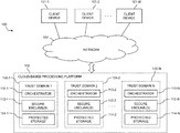 - Different portions of the cloud-based processing platform 102 are illustratively associated with different trust domains of system 100 .