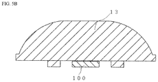 - FIG. 5A is a schematic top view of a light-emitting device according to the present disclosure and a lens member.
