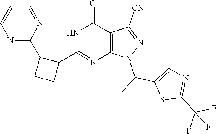 The following table shows representative data for the compounds of the Examples as PDE9 inhibitors as determined by the assays described herein. In this table, the PDE9 Ki is a measure of the ability of the test compound to inhibit the action of the PDE9 enzyme. Such results are indicative of the intrinsic activity of the compounds for use as inhibitors of the PDE9 enzyme.