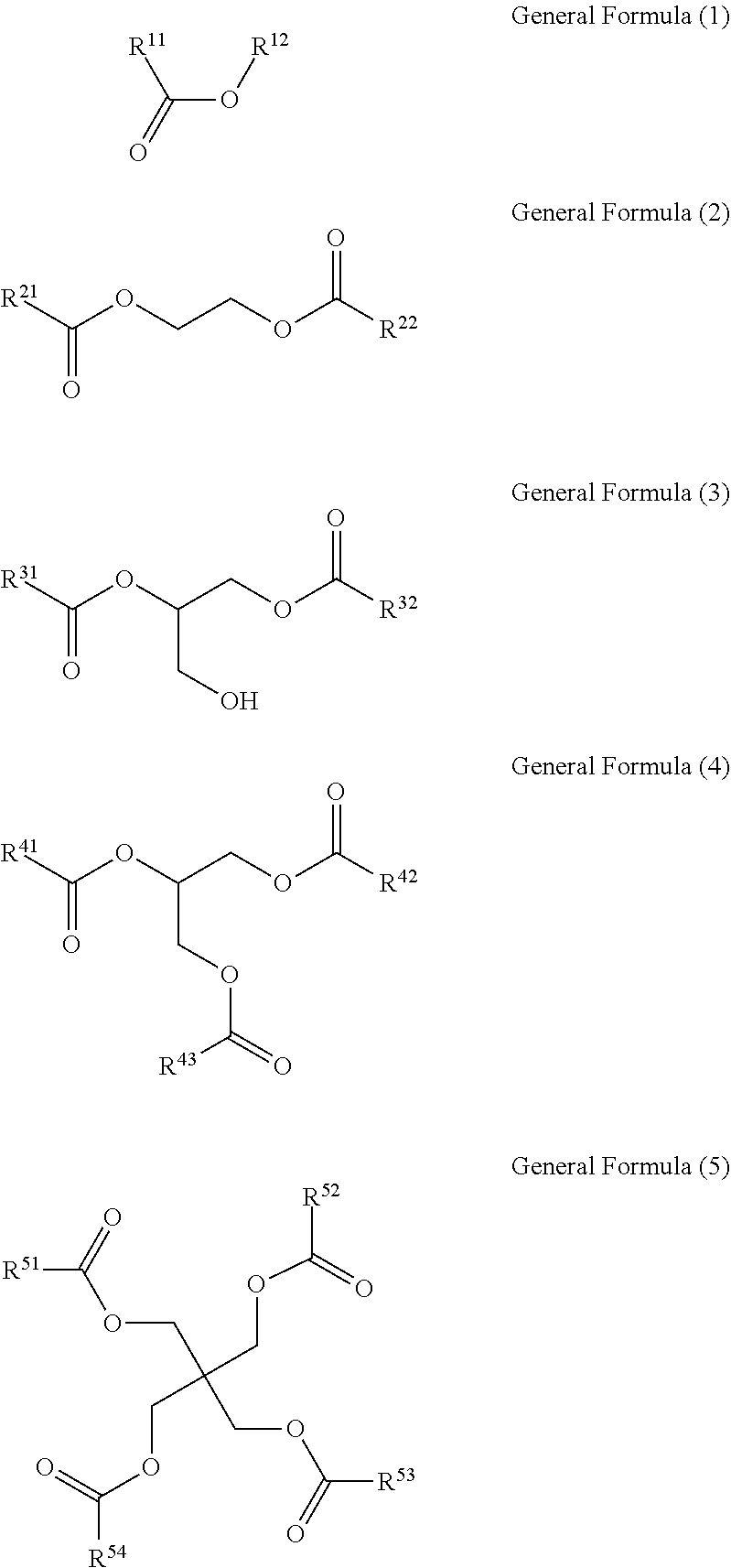 In the General Formula (CA), A1, A2 and A3 each independently represent a hydrogen atom or an acyl group, and n represents an integer of 2 or more. However, at least a part among n A1, n A2, and n A3 represents acyl groups. The n A1 in the molecule may be all the same, partly the same, or different from each other. Similarly, the n A2 and the n A3 in the molecule may be all the same, partly the same, or different from each other.