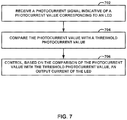 - the processing circuitry are configured to receive a photocurrent signal indicative of a photocurrent value corresponding to the LED, compare the photocurrent value with a threshold photocurrent value, and control, based on the comparison of the photocurrent value with the threshold photocurrent value, an output current of the LED.