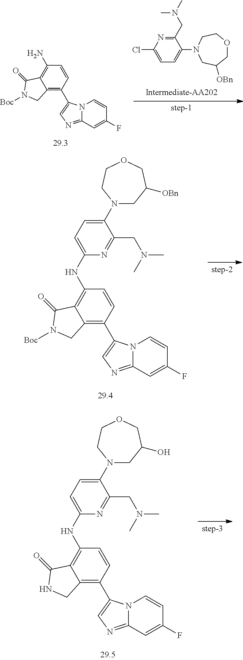 - GSBJHJROHHXKQM-KRWDZBQOSA-N CN(C)CC1=NC(NC2=CC=C(C3=CN=C4C=C(F)C=CN34)C3=C2C(=O)NC3)=CC=C1[C@H]1CCN(C)C(=O)C1 Chemical compound CN(C)CC1=NC(NC2=CC=C(C3=CN=C4C=C(F)C=CN34)C3=C2C(=O)NC3)=CC=C1[C@H]1CCN(C)C(=O)C1 GSBJHJROHHXKQM-KRWDZBQOSA-N 0.000 description 3