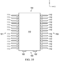 The elongated first and second sides 101 and 102, respectively, have associated leads. The leads in this example include a set of first leads 111 that extend outward from the first side 101, and a set of second leads 112 that extend outward from the opposite second side 102. The respective ones of the first leads 111 extend outward from the first side 101 along the first direction X, and the respective ones of the second leads 112 extend outward from the second side 102 along the first direction X. Within each set, the leads 111, 112 are spaced from one another along the second direction Y, for example, in a uniform lead pitch pattern, although uniform spacing and uniform lead shapes are not required for all possible implementations.