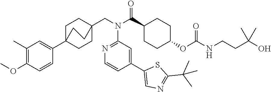 - TXFDTPOGZBYJGC-PEICSJJBSA-N COC1=C(C)C=C(C23CCC(CN(C4=NC=CC(C5=CN=C(C(C)(C)C)S5)=C4)C(=O)[C@H]4CC[C@H](OC(=O)N5CC(S(C)(=O)=O)C5)CC4)(CC2)CC3)C=C1 Chemical compound COC1=C(C)C=C(C23CCC(CN(C4=NC=CC(C5=CN=C(C(C)(C)C)S5)=C4)C(=O)[C@H]4CC[C@H](OC(=O)N5CC(S(C)(=O)=O)C5)CC4)(CC2)CC3)C=C1 TXFDTPOGZBYJGC-PEICSJJBSA-N 0.000 description 3
