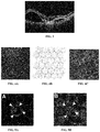 FIGS. 4A-4C illustrate the hexagonal structure of the RPE. In particular, FIG. 4A illustrates healthy RPE and FIG. 4B illustrates interlocking hexagon structures. In the RPE, the structure allows for an economy for actin production, one of the major intracellular protein governing the attachments of the cell to cell adhesion, and the structural protein forming the submembrane support for the hexagon. Further, the microvilli of the RPE surface also is supported in structure by the projection and maintenance of intracellular actin, as well as the RPE attachment of the basement membranes. Actin also attaches to other cell to cell protein such as cadherins which functions as the grout-glue of the RPE sheet and support its functioning barrier effect. Derangement in actin formation, formation of altered forms and arrangement of actin and associated proteins, and regression of microvilli have been described as early changes in stage 1 age related macular degeneration and related diseases. FIG. 4C illustrates an RPE suffering from macular degeneration. As illustrated in FIG. 4C, the actin and microvilli of the diseased cells are misshapen and no longer arranged as orderly hexagons.