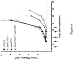 FIG. 6 shows representative average tumor volume (mm3±SEM) over 35 days in various treatment groups of double humanized Lag-3/PD-1 mice (control, circle: human isotype control antibody not specific for mouse or human LAG-3 or mouse or human PD-1; anti-LAG3, diamond: anti-human LAG-3 antibody; anti-PD1, hexagon: anti-human PD-1 antibody;). Arrows indicate the days of antibody treatment.