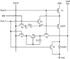 - the charger sub-subcircuit is further configured to receive the second control signal to make the driving transistor in conduction state for passing a driving current to drive the OLED for emitting light.