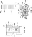 Locking wedge 3522 is biased in a proximal direction by compression springs 3542, 3544, which are cross-pinned by pins 3546, 3548 such that they are disposed within channels 3550, 3552 defined by locking wedge 3522. Locking wedge 3522 also defines a vertical slot 3554 that is sized and configured to receive pin 3556 to cross pin wedge 3522 within cavity 3518. Turning back to FIG. 102, holes 3558 are defined by the distal end 3506 of instrument 3500 on either side of dovetail joint 3516. Holes 3558 are sized and configured to receive pins 3010 therein as shown in FIG. 101.