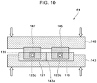 - FIG. 10 is a schematic sectional view of the coil-side-terminal-supporting portion, illustrated in FIG. 8 , held between a supporting table and a pressing member.
