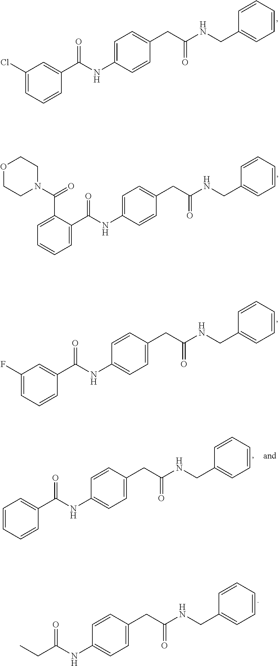 The final step to prepare KAC compounds was accomplished via reaction of the corresponding acid chloride or acid anhydride under appropriate condition to afford KAC final compounds. The acid chloride intermediates for KAC-03 to KAC-07 were prepared according to steps described in FIGS. 4 and 5. Specifically, the corresponding cyclic acid anhydride of phthalic acid (for KAC-03 and KAC-04) or diphenic anhydride (for KAC-05, KAC-06 and KAC-07) was used as the starting material. The appropriate amine was heated with the acid anhydride in toluene. Subsequently, the freed carboxylic acid from the previous step was activated by conversion to acid chloride followed by reaction with the amine 4 (i.e. KAC-14).