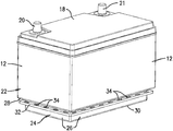 - the battery shell 12 has a cover 18 and positive and negative terminals 20 , 21 extending through the cover and electrically connected to the internal battery components.