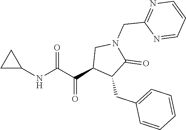 | IC50 values of the compounds determined in the enzyme activity assay for PLA2G16 described below and EC50 values of the compounds determined in the anti-picornavirus assay described below are given in parentheses. Compounds with IC50 values <1 μM (class “A”) in the enzymatic activity assay are considered as highly active, compounds with IC50 values between 1 and 10 μM (class “B”) are considered as medium active and compounds with IC50 values greater than 10 μM, but below 50 μM (class “C”) are considered as weakly active. Antiviral activity against four different picornaviruses is categorized analogously, where class “I” denotes compounds with EC50 < 1 μM, class “II” with EC50 between 1 μM and 10 μM and class “III” with EC50 > 10 μM. |