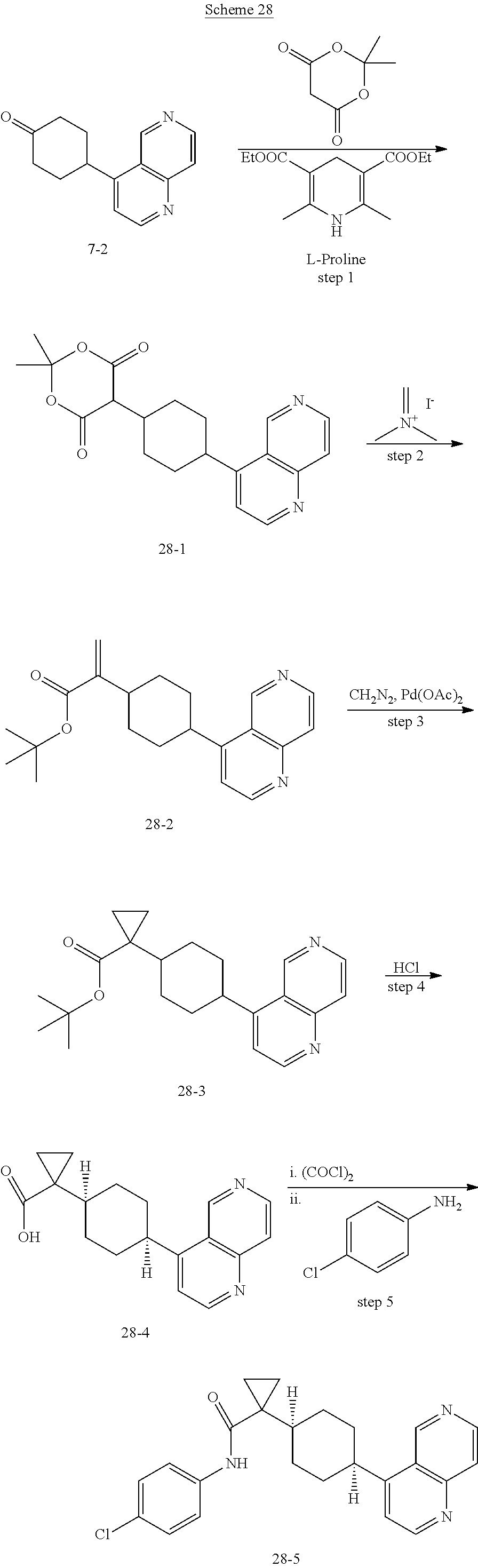 - DOEJNYUUEFHXGO-XCPOYPALSA-N C=C(C(=O)OC(C)(C)C)C1CCC(C2=CC=NC3=C2C=NC=C3)CC1.C=[N+](C)C.CC(C)(C)OC(=O)C1(C2CCC(C3=CC=NC4=C3C=NC=C4)CC2)CC1.CC1(C)OC(=O)C(C2CCC(C3=CC=NC4=C3C=NC=C4)CC2)C(=O)O1.CC1(C)OC(=O)CC(=O)O1.CCOC(=O)C1=C(C)NC(C)=C(CC)C1.Cl.NC1=CC=C(Cl)C=C1.O=C1CCC(C2=CC=NC3=C2C=NC=C3)CC1.O=C=O.[H][C@]1(C2=CC=NC3=C2C=NC=C3)CC[C@@]([H])(C2(C(=O)NC3=CC=C(Cl)C=C3)CC2)CC1.[H][C@]1(C2=CC=NC3=C2C=NC=C3)CC[C@@]([H])(C2(C(=O)O)CC2)CC1.[I-] Chemical compound C=C(C(=O)OC(C)(C)C)C1CCC(C2=CC=NC3=C2C=NC=C3)CC1.C=[N+](C)C.CC(C)(C)OC(=O)C1(C2CCC(C3=CC=NC4=C3C=NC=C4)CC2)CC1.CC1(C)OC(=O)C(C2CCC(C3=CC=NC4=C3C=NC=C4)CC2)C(=O)O1.CC1(C)OC(=O)CC(=O)O1.CCOC(=O)C1=C(C)NC(C)=C(CC)C1.Cl.NC1=CC=C(Cl)C=C1.O=C1CCC(C2=CC=NC3=C2C=NC=C3)CC1.O=C=O.[H][C@]1(C2=CC=NC3=C2C=NC=C3)CC[C@@]([H])(C2(C(=O)NC3=CC=C(Cl)C=C3)CC2)CC1.[H][C@]1(C2=CC=NC3=C2C=NC=C3)CC[C@@]([H])(C2(C(=O)O)CC2)CC1.[I-] DOEJNYUUEFHXGO-XCPOYPALSA-N 0.000 description 1