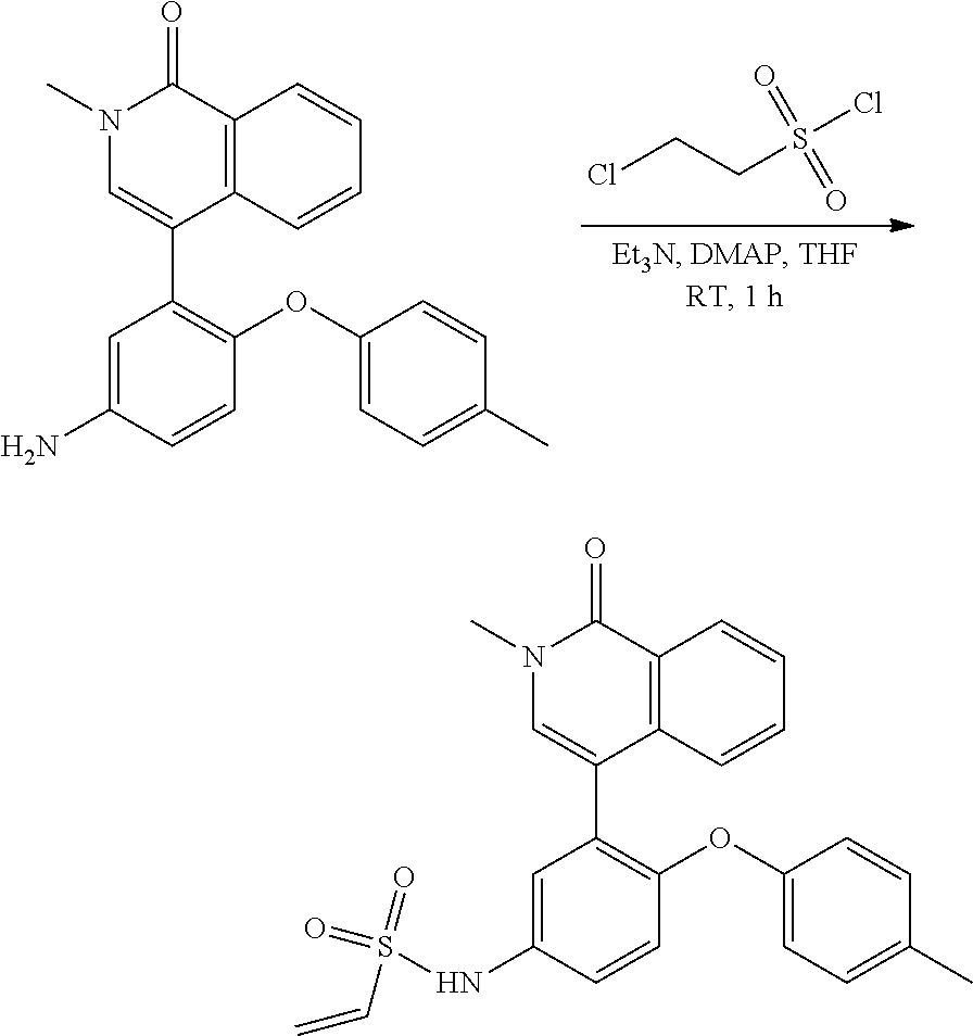 - UBYWPJZFPNDRRX-UHFFFAOYSA-N C#CC(=O)C1=CC(C2=CN(C)C(=O)C(CC)=C2)=C(OC2=C(C)C=CC=C2C)C=C1.C=CC(=O)C1=CC(C2=CN(C)C(=O)C3=C2C=CC=C3)=C(CC2=C(C)C=CC=C2C)C=C1.C=CC(=O)NC1=CC(C2=CN(C)C(=O)C3=C2C=CC=C3)=C(OC2=C(C)C=C(C)C=C2C)C=C1.C=CC(=O)NC1=CC(C2=CN(C)C(=O)C=C2OC)=C(OC2=CC=C(C)C=C2F)C=C1.C=CS(=O)(=O)NC1=CC(C2=CN(C)C(=O)C=C2OC)=C(OC2=CC=C(C)C=C2F)C=C1 Chemical compound C#CC(=O)C1=CC(C2=CN(C)C(=O)C(CC)=C2)=C(OC2=C(C)C=CC=C2C)C=C1.C=CC(=O)C1=CC(C2=CN(C)C(=O)C3=C2C=CC=C3)=C(CC2=C(C)C=CC=C2C)C=C1.C=CC(=O)NC1=CC(C2=CN(C)C(=O)C3=C2C=CC=C3)=C(OC2=C(C)C=C(C)C=C2C)C=C1.C=CC(=O)NC1=CC(C2=CN(C)C(=O)C=C2OC)=C(OC2=CC=C(C)C=C2F)C=C1.C=CS(=O)(=O)NC1=CC(C2=CN(C)C(=O)C=C2OC)=C(OC2=CC=C(C)C=C2F)C=C1 UBYWPJZFPNDRRX-UHFFFAOYSA-N 0.000 description 1