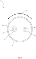 FIG. 2a is a sectional view of the cup holder cleaning device 10, as seen along a line I-I, as shown in FIG. 1 showing a first position of the brush heads 105, according to the preferred embodiment of the present invention;