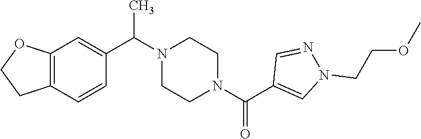 The test compound was administered orally to C57BL/6J mice. At defined time intervals after compound administration, typically a time ranging between 2 and 48 hours, preferably between 4 and 24 hours, mice were sacrificed by decapitation for blood collection and forebrain dissection. Right brain hemispheres were placed in 2 ml Precellys tubes, snap frozen in dry ice and stored at −80° C. Left hemispheres were placed in 2 ml Eppendorf tubes, snap frozen in dry ice and stored at −80° C. until further processing. Blood samples were collected in Sarstedt tubes containing 35 IU of Heparin and kept at 4° C. After centrifugation for 10 min at 3800×g, 4° C., 50 μL of plasma from each sample was transferred to a 1.5 ml Eppendorf tube and stored at −80° C. For the preparation of soluble brain protein for the immunoassay the hemispheres were homogenized in ice-cold Cytobuster reagent (71009-Merck Millipore) buffer with protease inhibitor cocktail. After centrifugation for 15 min at 17000×g at 4° C. the supernatants were transferred into polycarbonate tubes (1 ml). The supernatants were cleared by centrifugation for 1 h. at 100000×g, 4° C., and the protein concentrations were determined by using the BCA kit (23227-Pierce, Rockford, Ill.) according to the manufacturer's instructions.
