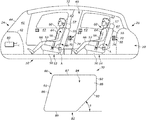 FIG. 3 is a schematic illustration of the cabin of the vehicle with a second seating arrangement and example airbags of the restraint system in a stored condition.